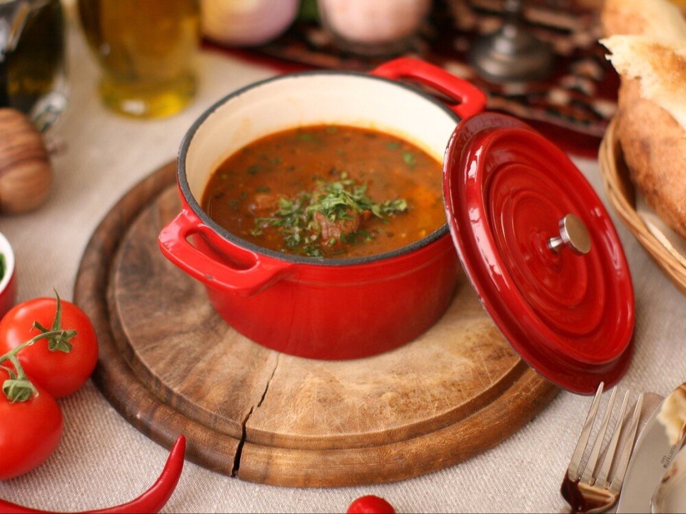 Традиционный грузинский суп с говядиной, зеленью и специями